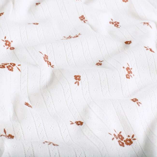 Deze fijngebreide tricotstof bestaat uit 100% zachte katoen, op een breedte van 155cm (190gr/m2). Er zit een ajour motief in geweven. Leuk voor t-shirtjes, shorts of hemdjes! Maar ook voor een lange rok, of blousjes. Alle stoffen worden verkocht per 10cm. De aangegeven prijs is ook per eenheid van 10cm. Wil je bv 1m stof bestellen? Kies dan 10 eenheden. Alles wordt uiteraard in 1 stuk geknipt.