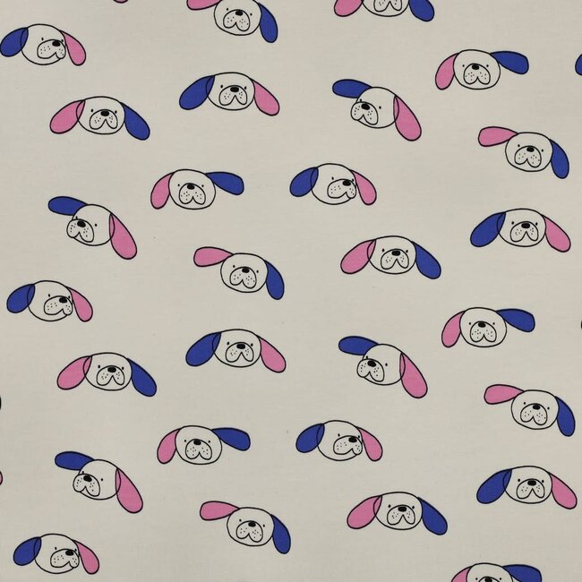 French Terry - dogs natural pink/blue