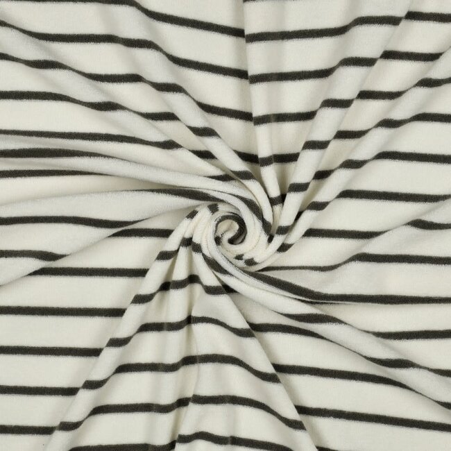 De Stoffenkamer Rekbare badstof - spons stripes - ecru / army