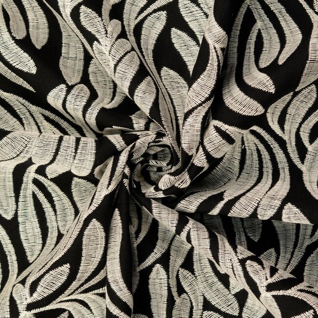 Beoordeel De Stoffenkamer Heavy Broderie linen mix black leafs scallop